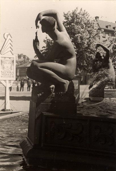 • Detaljer av Järntorgsbrunnen. Den främre kvinnofiguren föreställer Amerika, den bortre Europa.