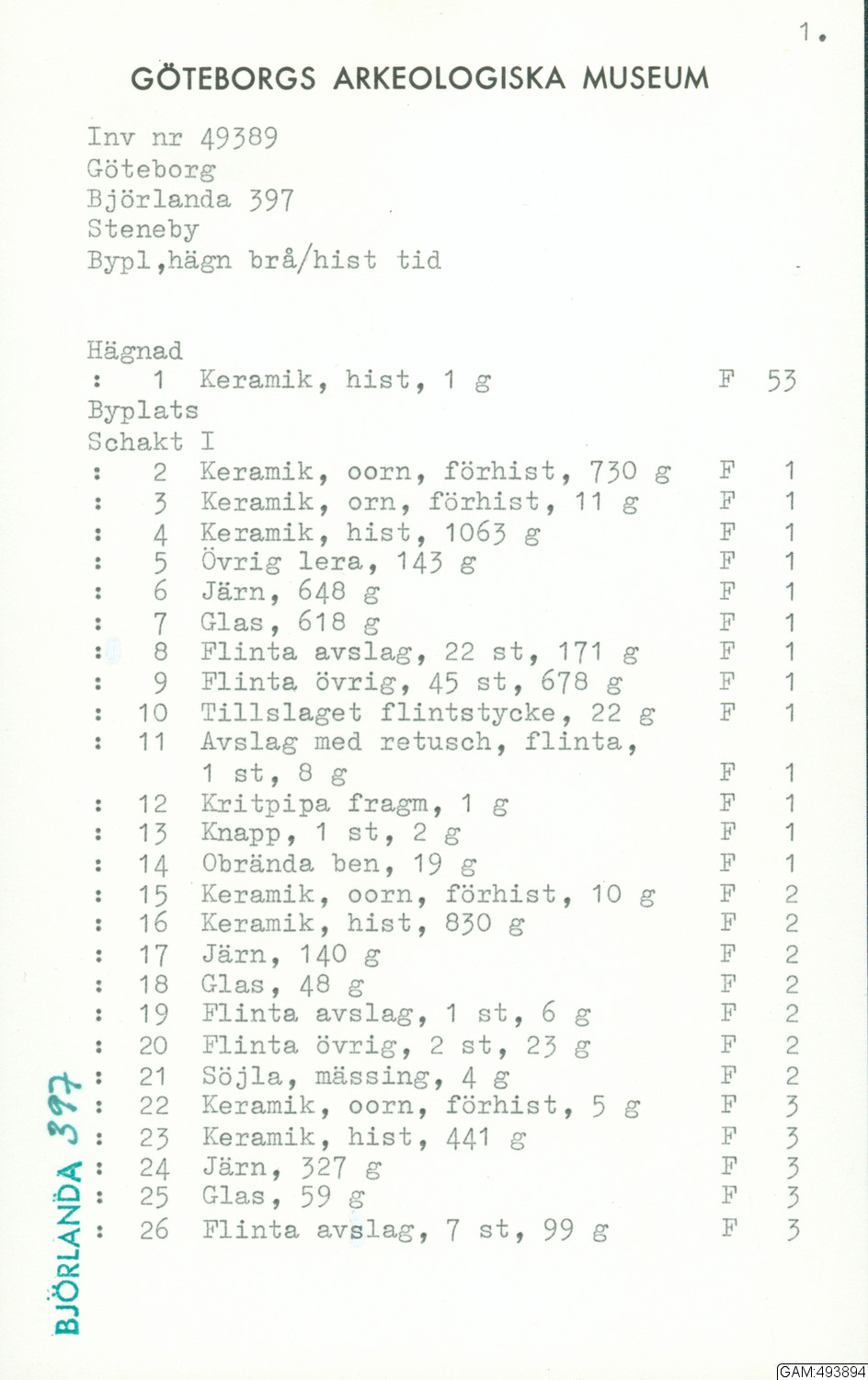 • Göteborgs stadsmuseum Arkeologisk arkivrapport nr 1975:1