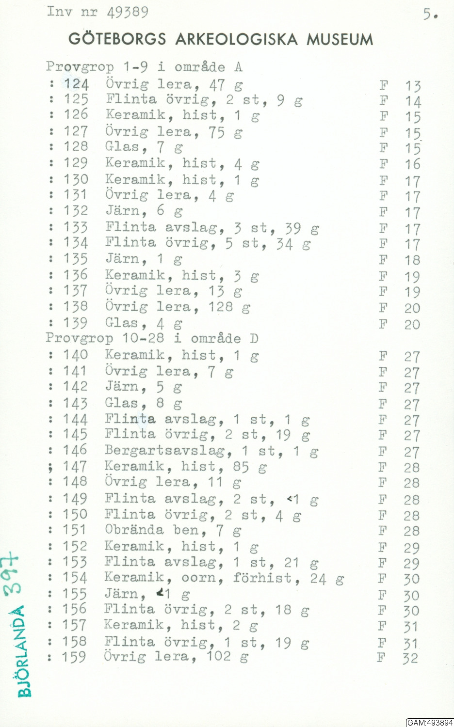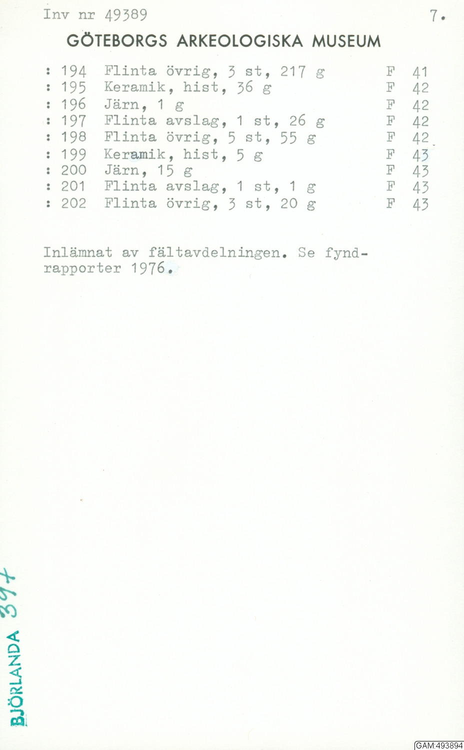 • Hittad 1975-06-03 - 1975-08-22 i Göteborg, Björlanda, Göteborg, Bohuslän, Sverige av Bertilsson, Ulf, 1948-, Andersson, Stina, arkeolog.