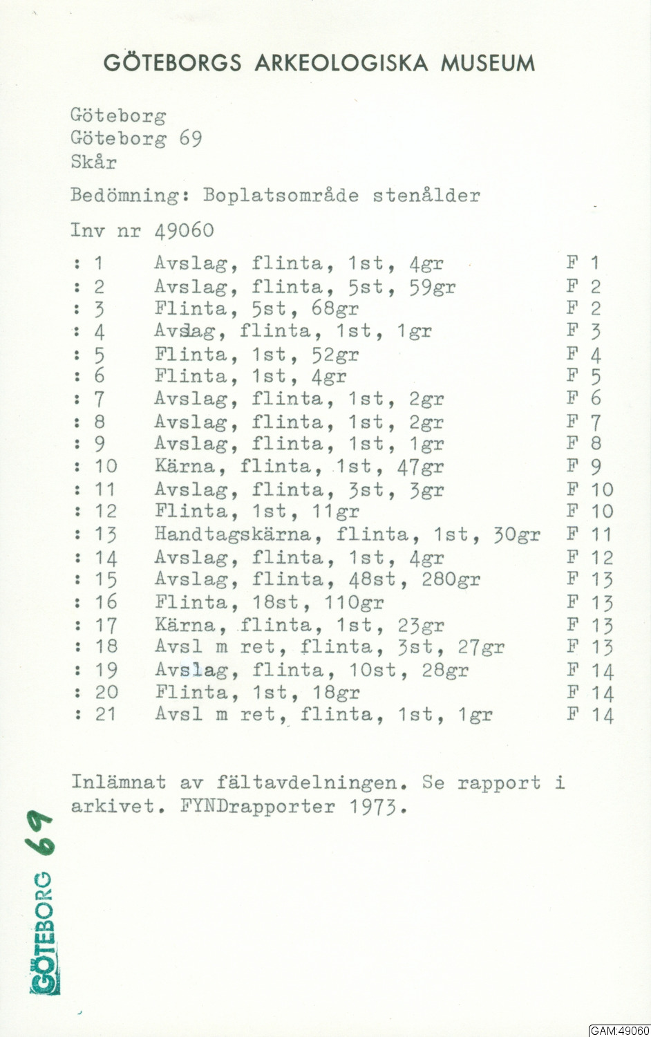 Plats <presPlaceLabel> Europa, Sverige, Backa, Västra Götaland, Göteborg, Skår, Göteborg 69, 22:S 18