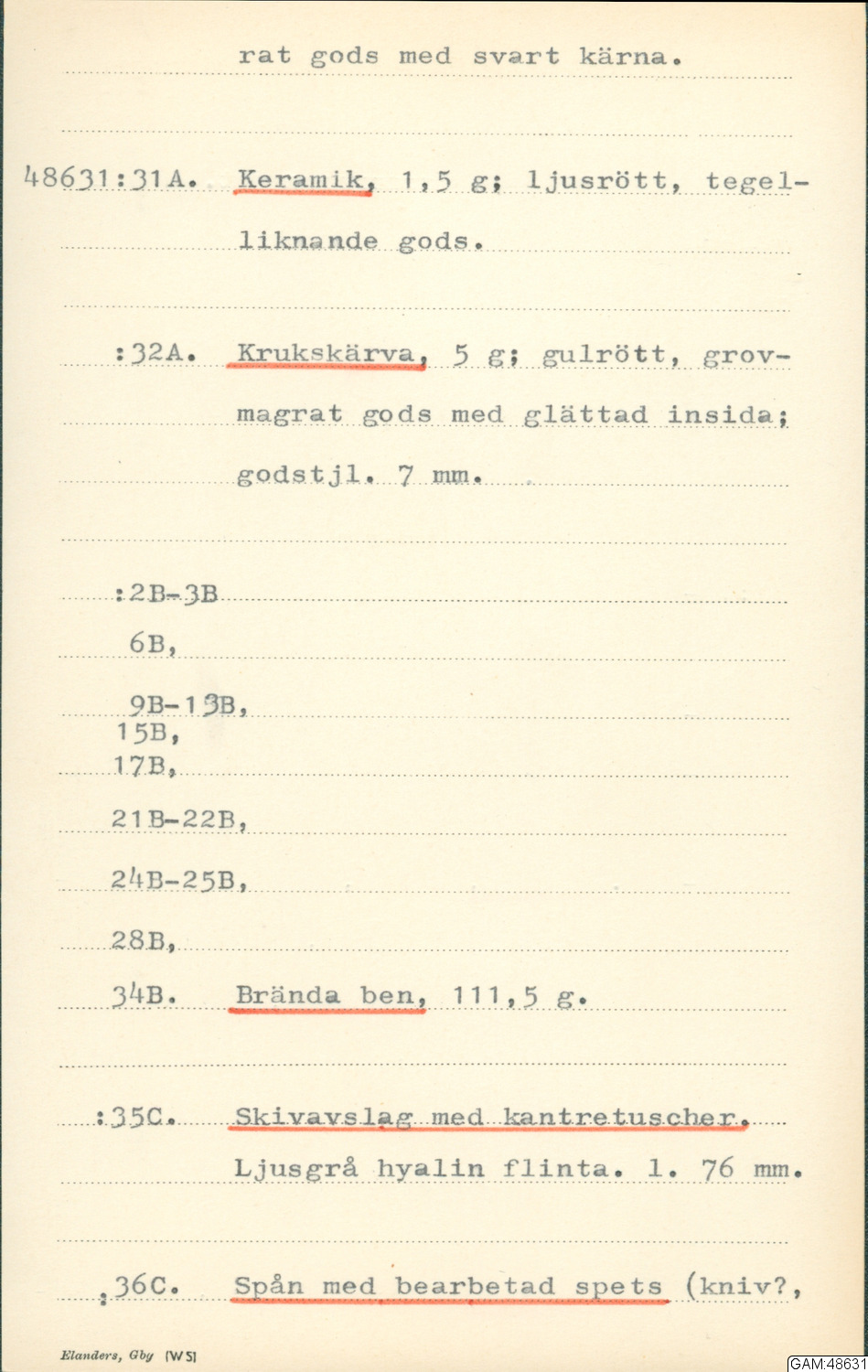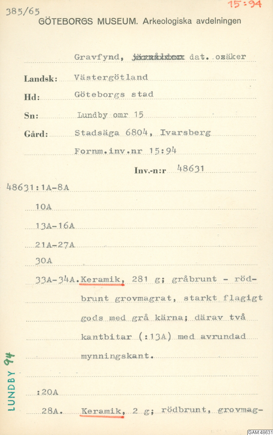 Hittad 1964-06-25 - 1964-07-10 i Göteborg, Lundby, Västergötland, Sverige, Europa av Andersson, Stina, arkeolog.