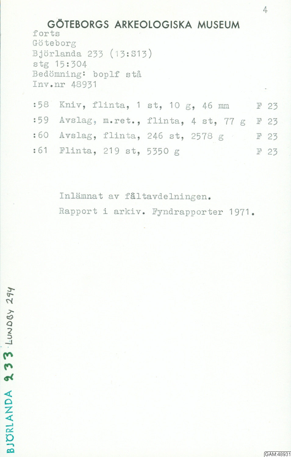 • Arkeologisk rapport 1970:14