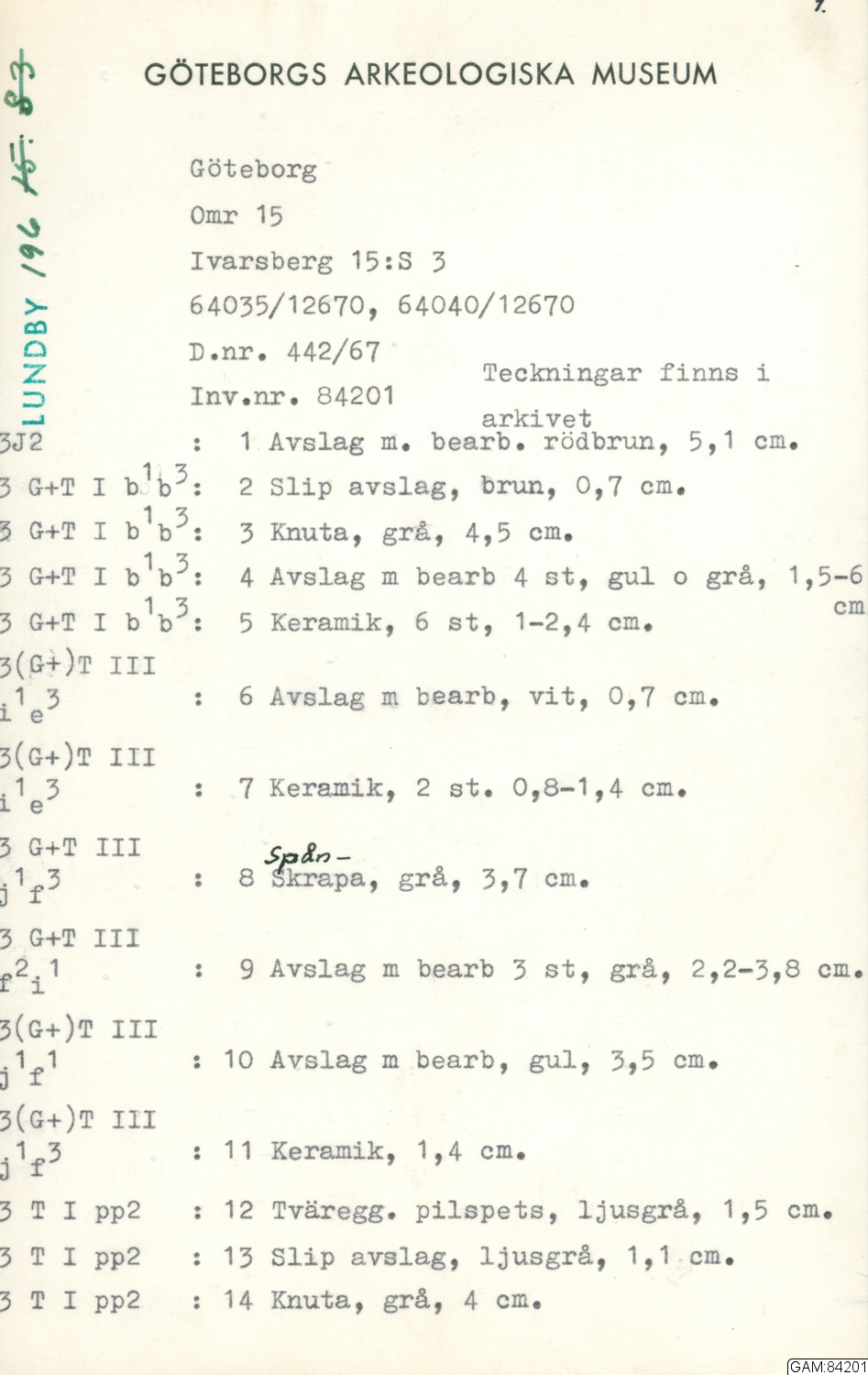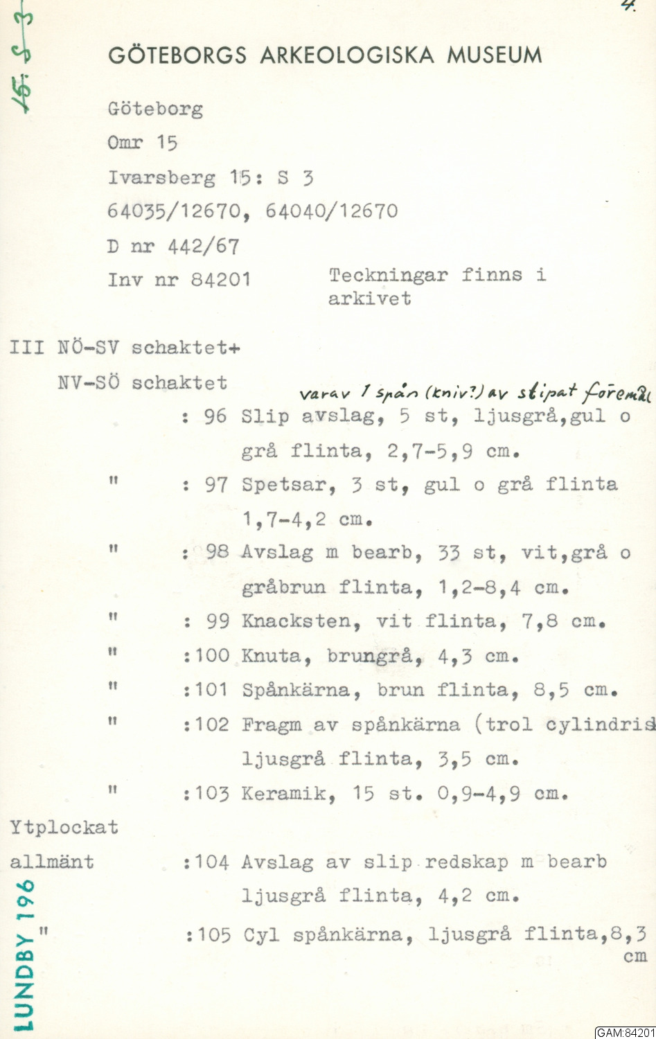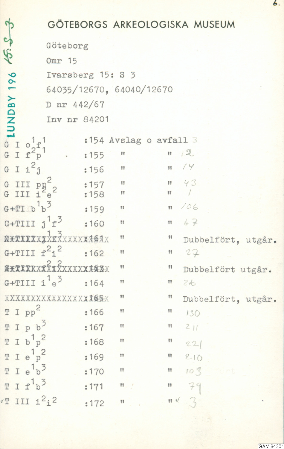 Hittad 1964-07-02 - 1964-11-13 i Göteborg, Lundby, Västergötland, Sverige, Europa av Andersson, Stina, arkeolog.