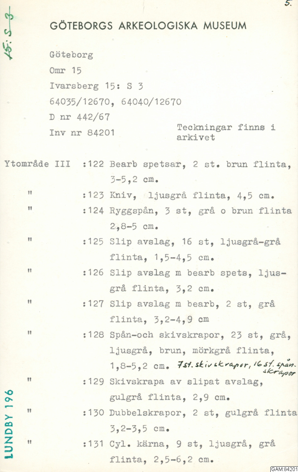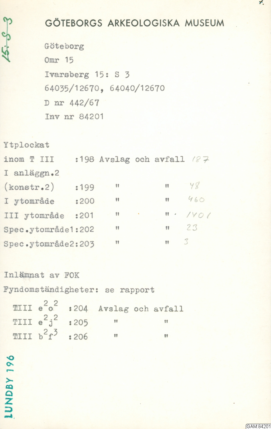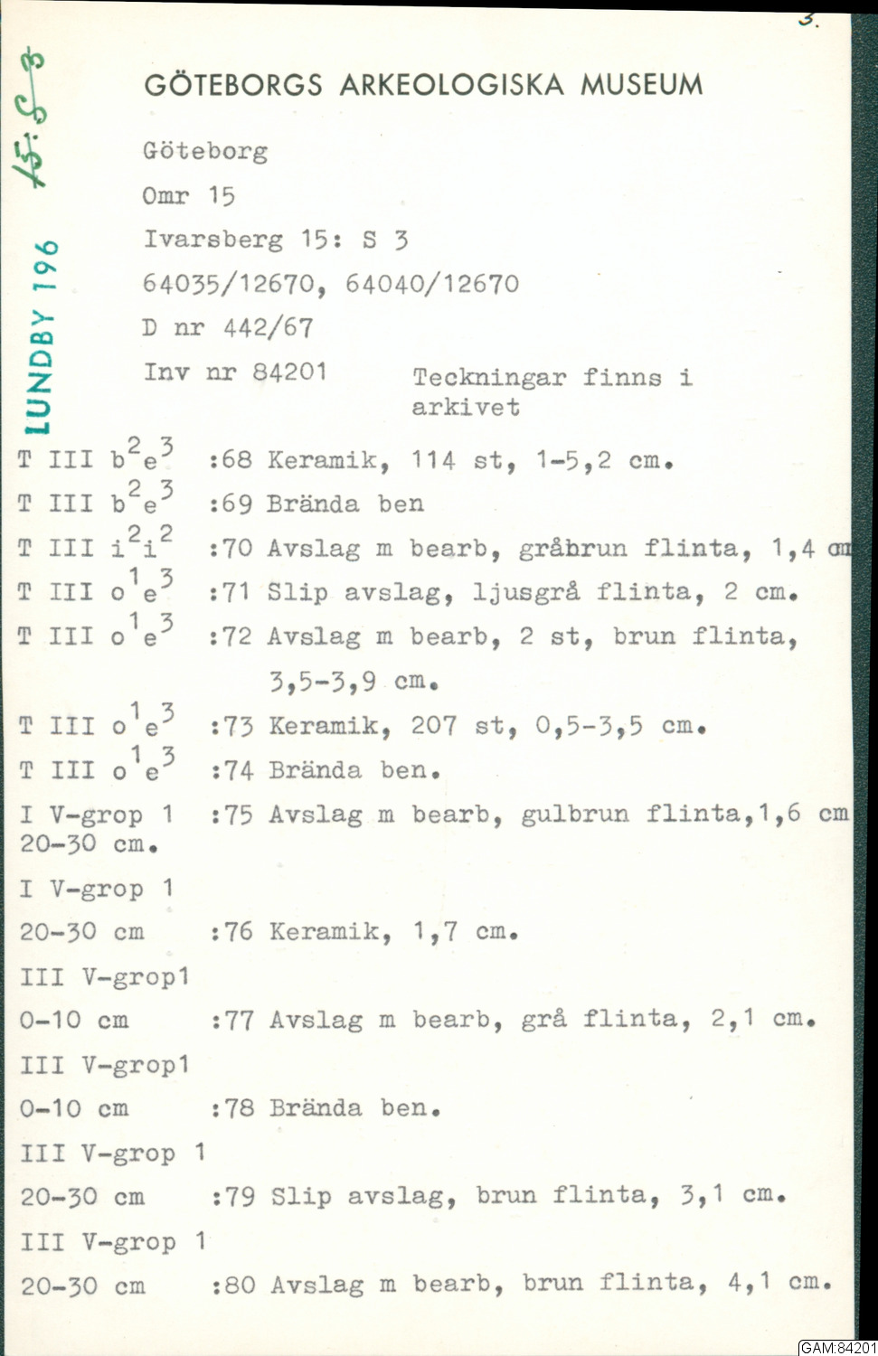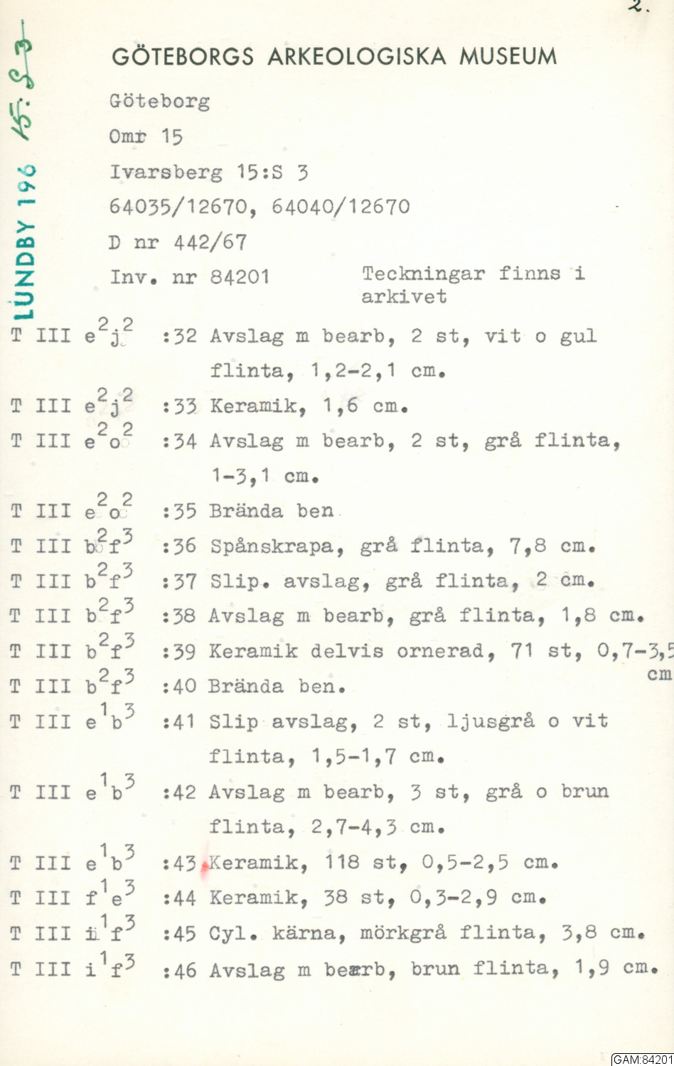 Hittad 1964-07-02 - 1964-11-13 i Göteborg, Lundby, Västergötland, Sverige, Europa av Andersson, Stina, arkeolog.