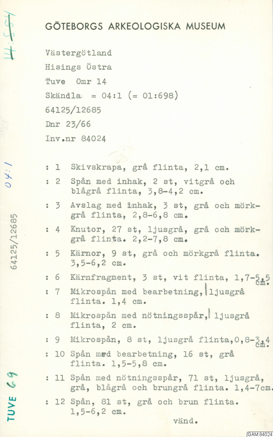 • Hittad 1966 i Skändla Sörgård, Tuve, Göteborg, Västergötland, Sverige.
