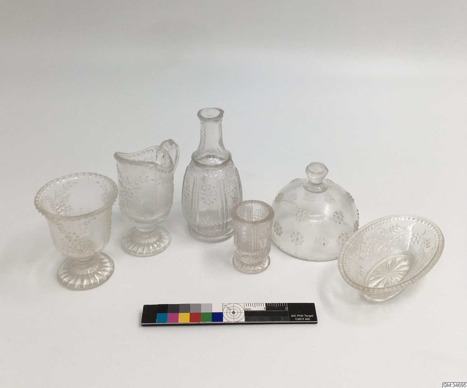 dockskåpsföremål, glasservis, leksaker