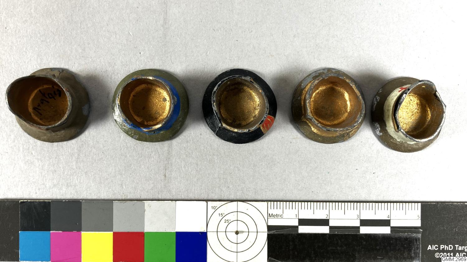 • Diverse miniatyrmodeller av bly, 5 st huvudbonader.