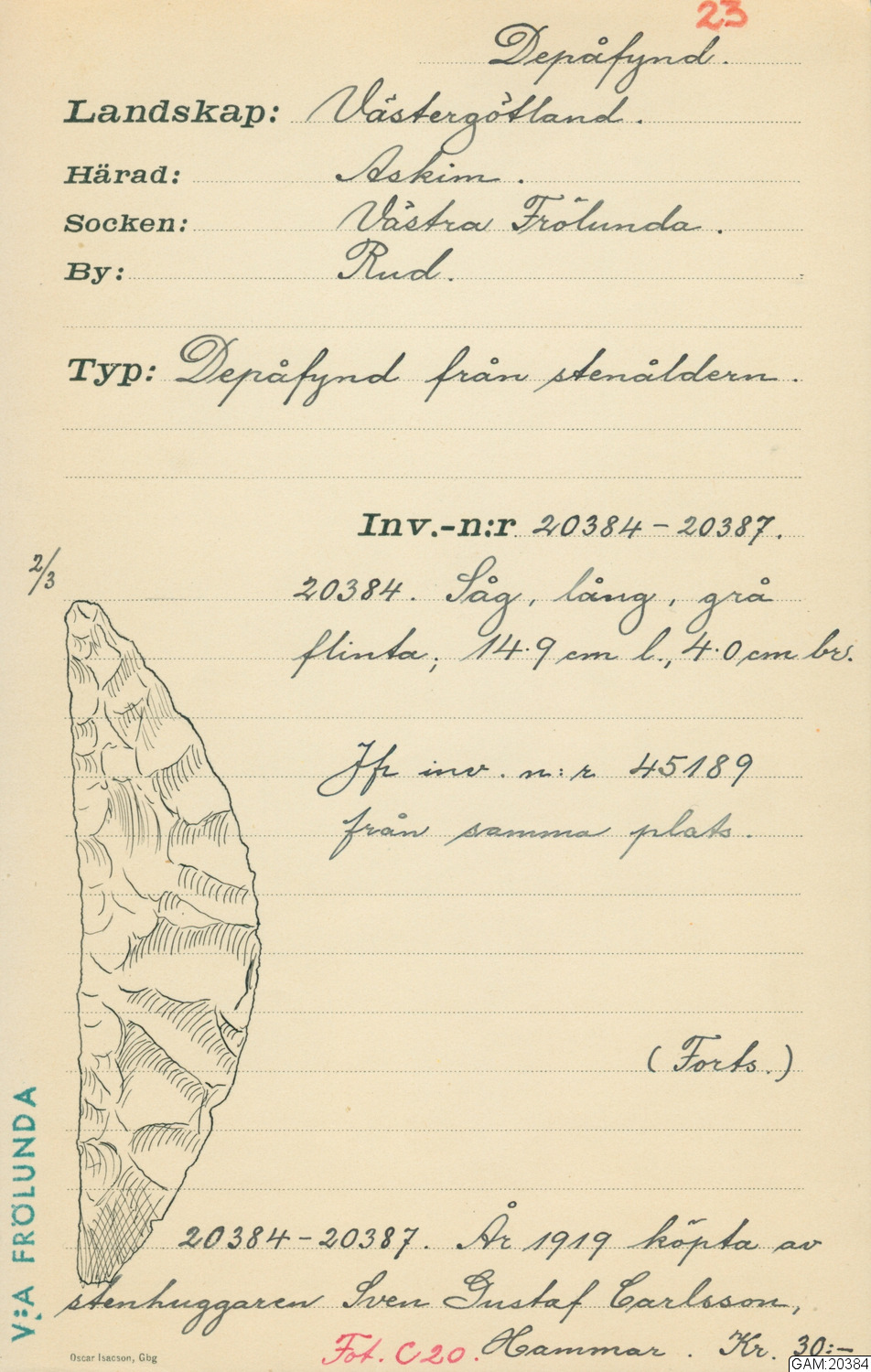 • Hittad 1919 i Askim, Västra Frölunda, Göteborg, Västergötland, Sverige.