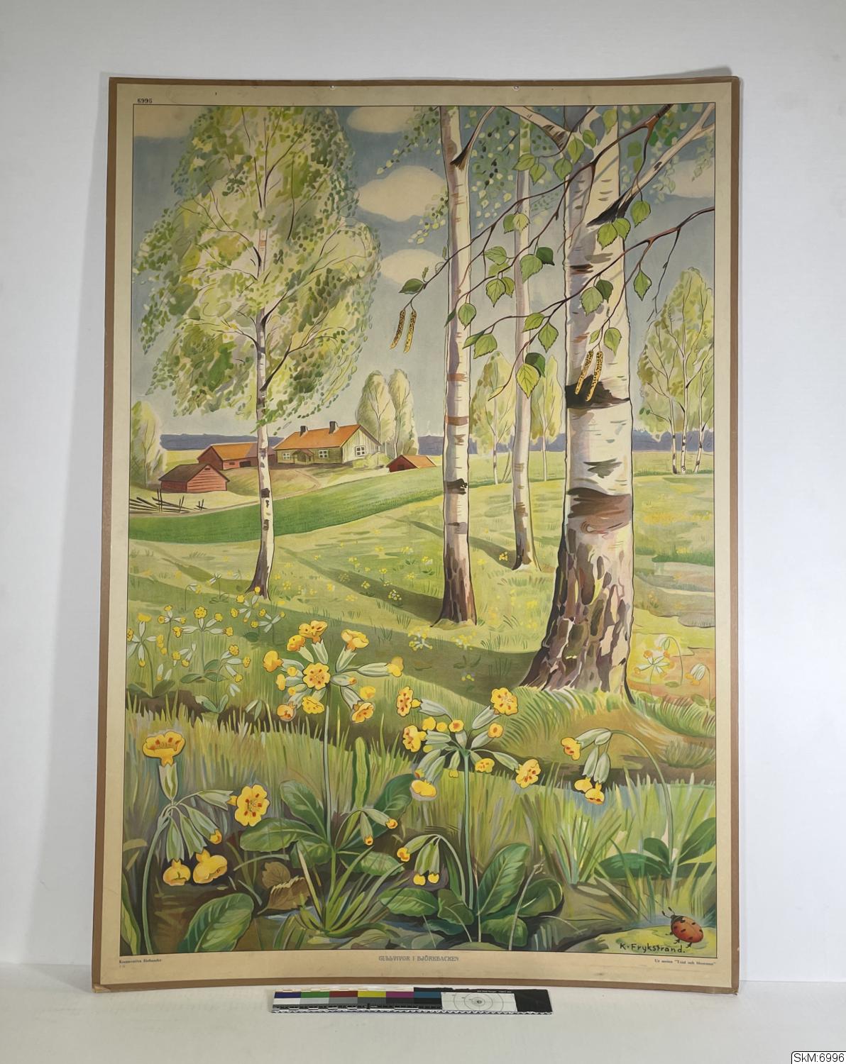 bilder, skolplansch, Gulllvivor i björkbacken, Träd och blommor i sin naturliga miljö