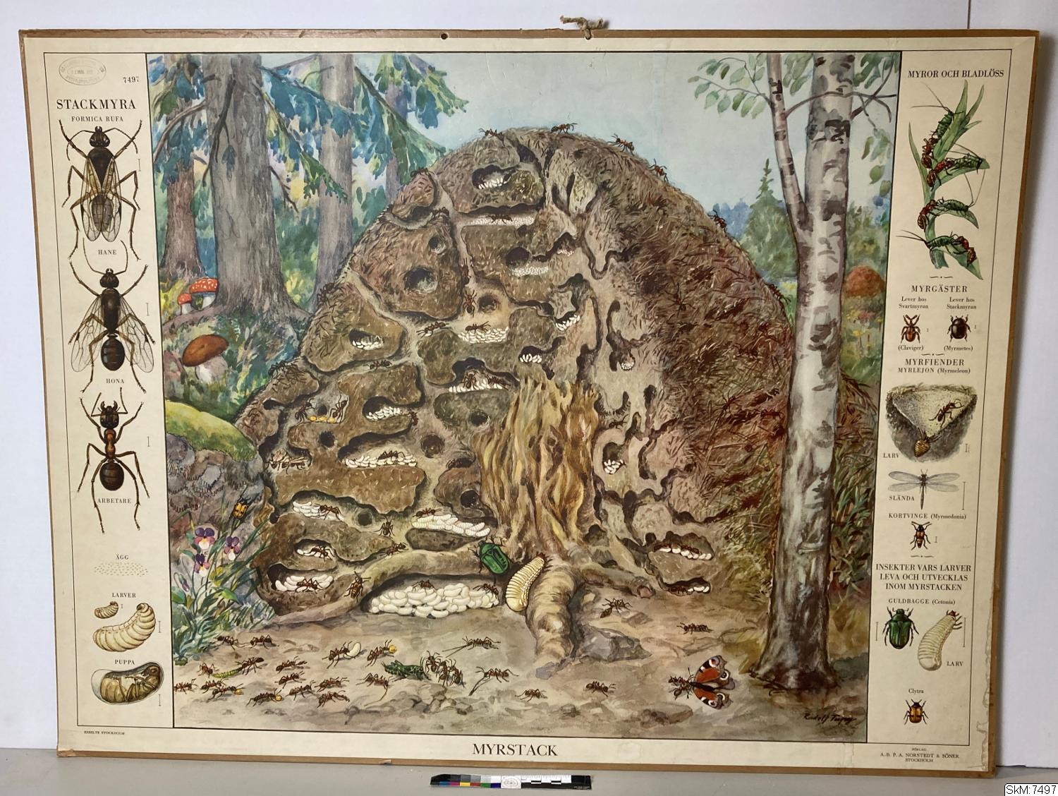 skolplansch, bilder, Skogsmyror med stack, Tavlor över svenska djur
