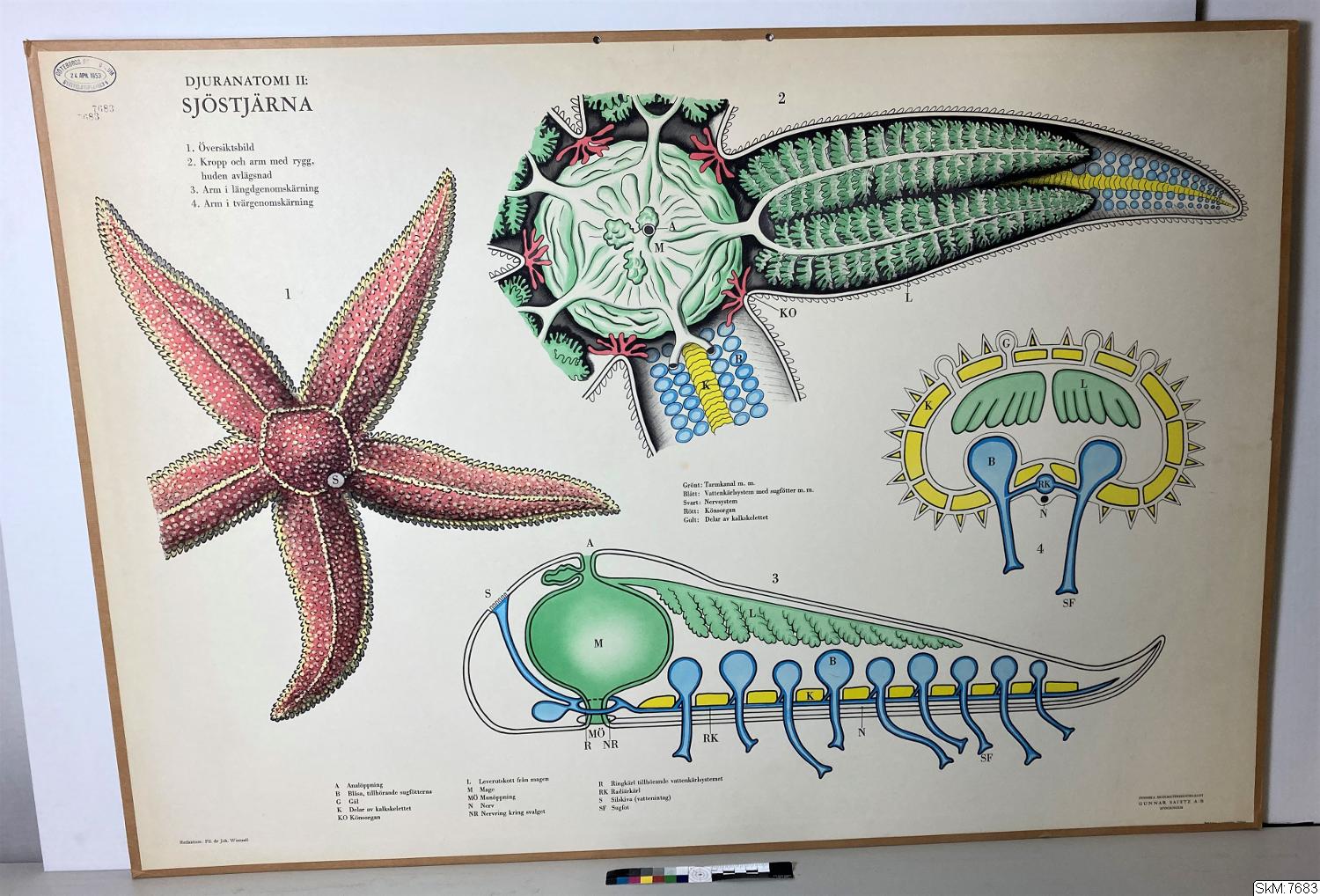 skolplansch, bilder, Djuranatomi serie II, Sjöstjärna