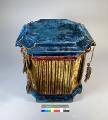 • Stor vas av porslin med lösa beslag av metall med tillhörande plyschklädda pedistaler. Del av ett par med GM:1846.