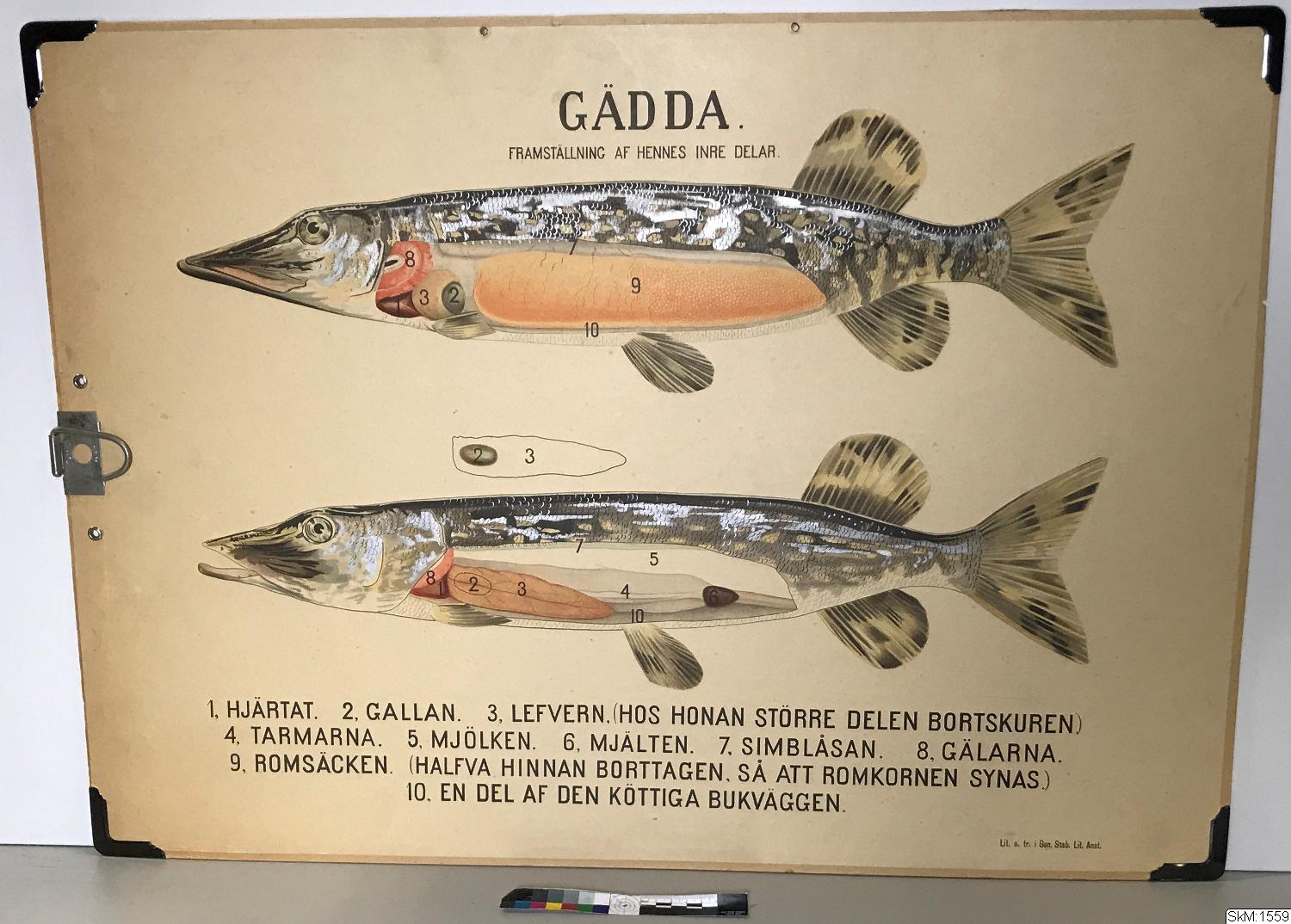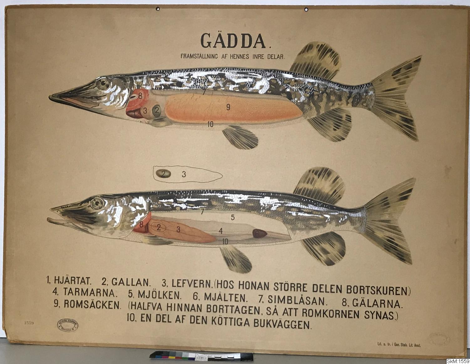 skolplansch, bilder, hemkunskap, Gäddan (dess inre delar)