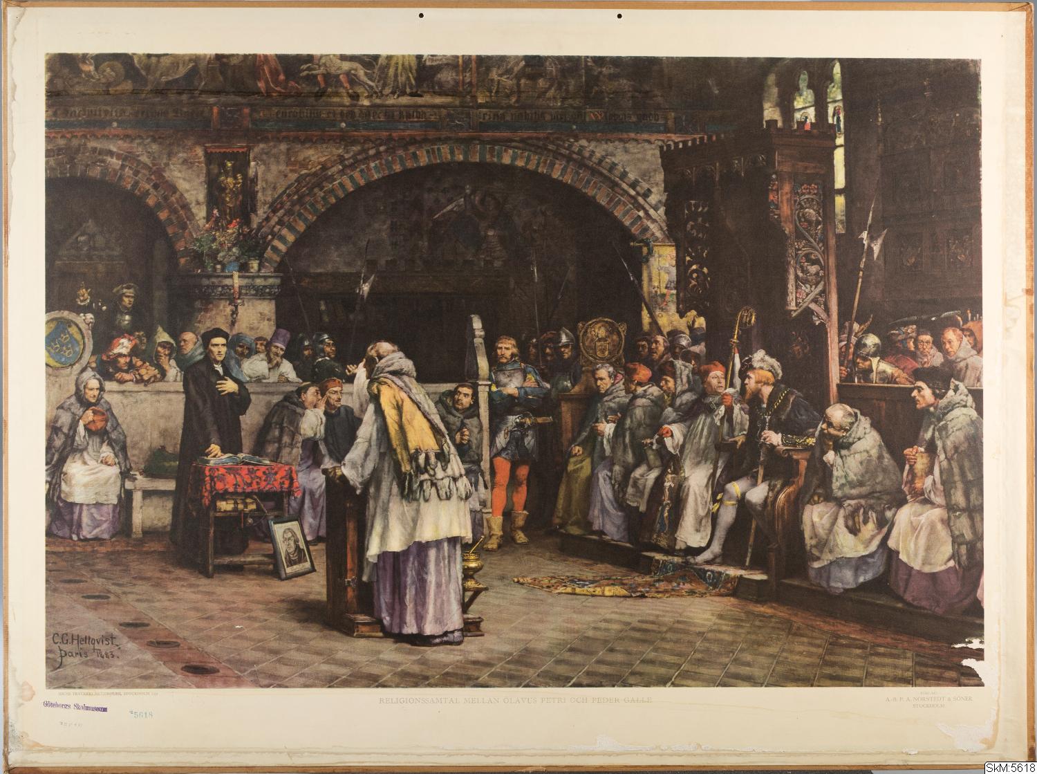• Skolplansch ur Norstedts serie Svenska historiska tavlor, föreställande "Religionssamtalet mellan Olavius Petri och Peder Galle". Gåva från förlaget 1931.