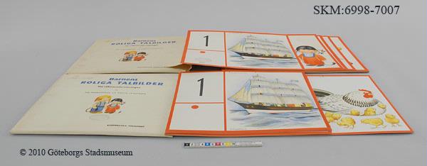 Ett kuvert med tio stycken bilder, varje bild har fått ett eget inventarienummer. Finns i två exemplar, d.v.s. två identiska kuvert med vardera tio bilder, dock har de båda kuverten samma inventarienummer.