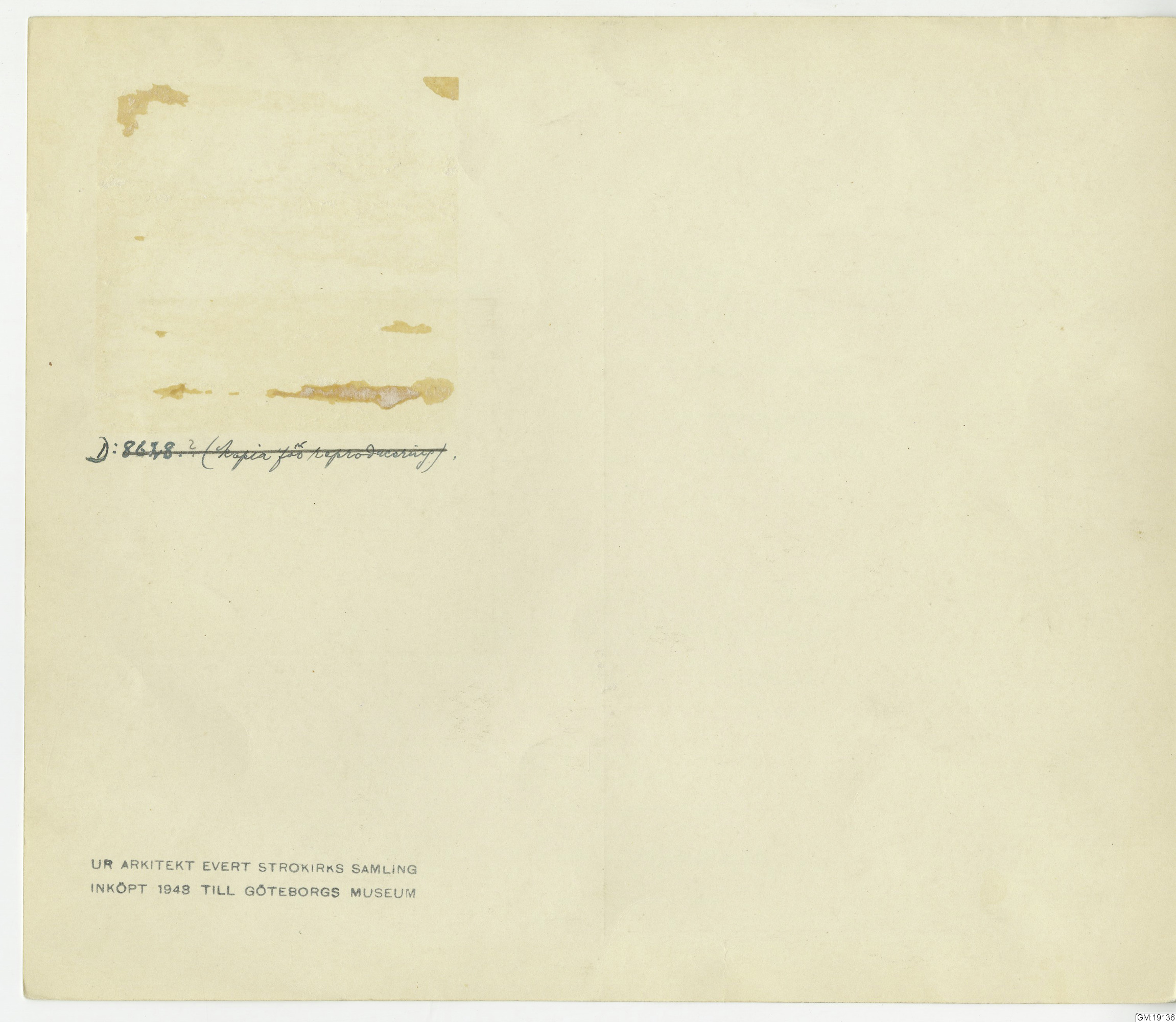 Förvärvad 1948 i Stockholm, Sverige av Evert Strokirks dödsbo.