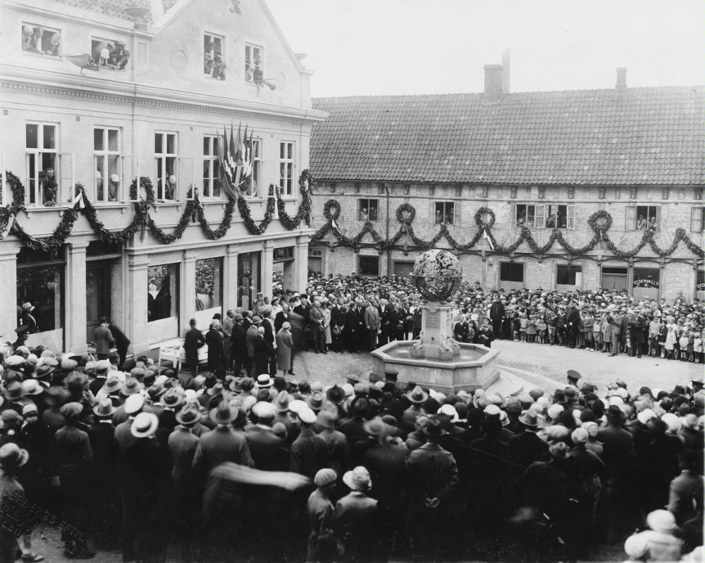 "Tycho Brahebrunnen på Tycho Brahes plats är uppsatt 1927. Den invigdes av den dåvarande kronprinsen, sedermera kung Gustav VI Adolf. Brunnen är ritad av G W Widmark och utformad som en himmelsglob av...