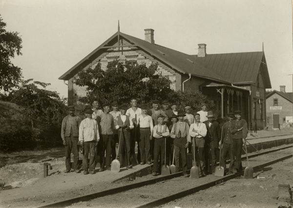 • Arbetslag från Påarps stationsbyggnad.