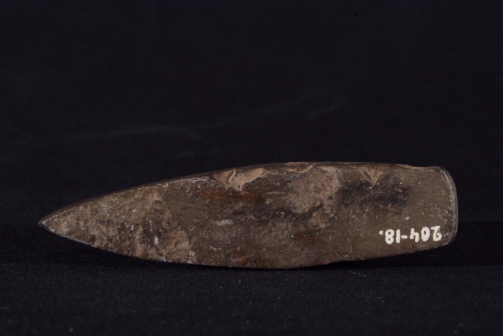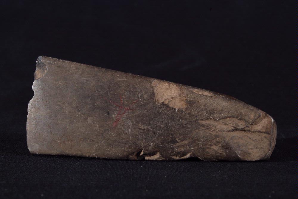 • Tjocknackig yxa av svart stenart