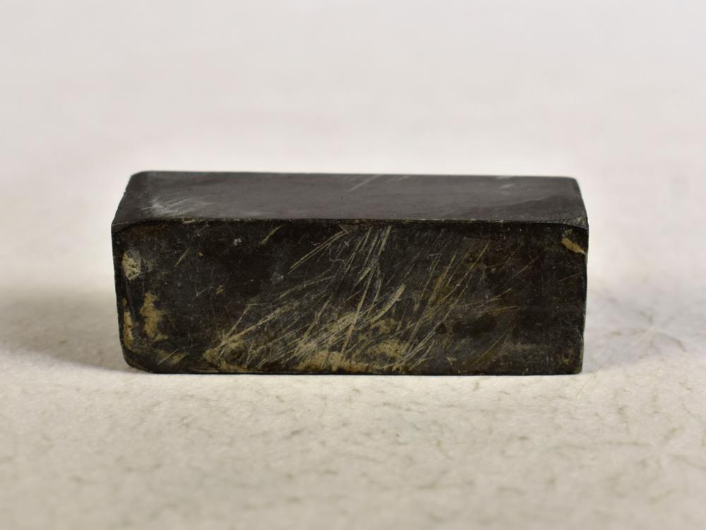 • Rektangulärt, bryne av svartgrå oljesten.