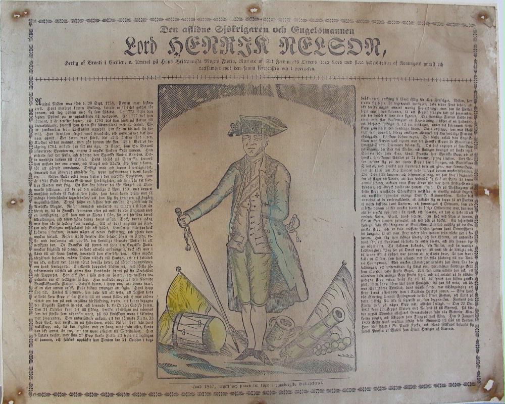 • Kistebrev, tryckt i Lund 1847. Föreställer sjökrigaren och engelsmannen Lord Horatio Nelson.