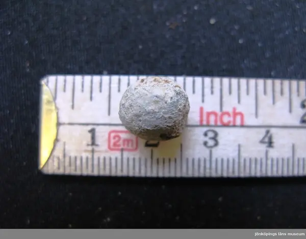 Pistolkula, från Getaryggen, Angerdshestra socken, Jönköpings län. Den 24 oktober 2010, 20-21 maj 2011, 2012 och 2013 utfördes metalldetektering vid Hovmejan/Bergsliderna som ett led i projektet Getaryggen 1567 (Projektägare Stiftelsen Regementsheden Skillingaryd. Projektansvariga: Sven Engkvist, Claes Pettersson, Rickard Wennerberg. Delrapporter 2010, 2011, 2012, 2013). Under metalldetekteringen påträffades bland annat en pistolkula av bly som härstammar från det mindre slag mellan svenskarna och danskarna som skedde på platsen år 1567. Bakgrunden till slaget var det Nordiska sjuårskriget (1563-1570) och danskarnas offensiv mot Sveriges centrala delar.