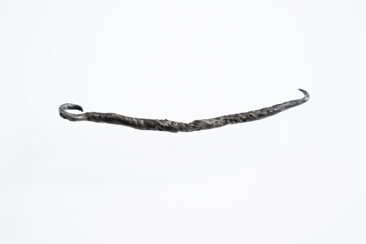 Järnten, från Getaryggen, Angerdshestra socken, Jönköpings län. Under 2012 utfördes metalldetektering vid Hovmejan/Bergsliderna som ett fortsatt led i projektet Getaryggen 1567 (Projektägare Stiftelsen Regementsheden Skillingaryd. Projektansvariga: Sven Engkvist, Claes Pettersson, Rickard Wennerberg. Delrapporter 2010, 2011, 2012, 2013). Under metalldetekteringen påträffades bland annat denna ten med krokar i båda ändar, som härstammar från det mindre slag mellan svenskarna och danskarna som skedde på platsen år 1567. Bakgrunden till slaget var det Nordiska sjuårskriget (1563-1570) och danskarnas offensiv mot Sveriges centrala delar.