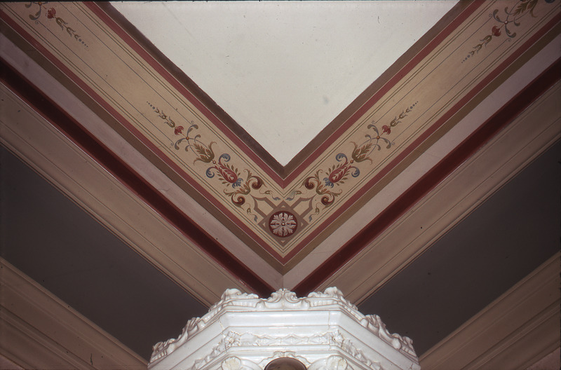 • Lund. Kv. Repslagaren 9. St. Söderg. 55. Första våningen. Detalj av tak i rum motsvarande halva C i Brinkska våningen.