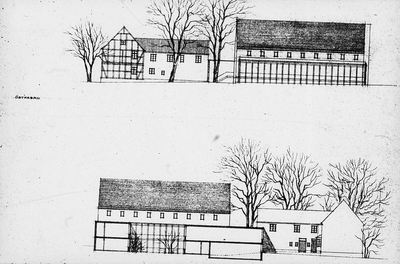 • Lund. Kv. S:t Peter 27. Förstudie till stadsbiblioteket. Fasader. Ark. Flemming Lassen.