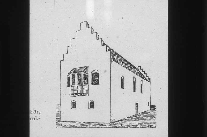• Lund. Kv. Färgaren 17. Rekonstruktionsritning av medeltidshuset.