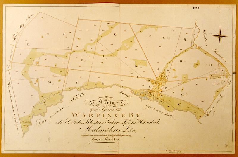 • Lund. Karta öfver Ägorne till Wärpinge By 1791 Jean Åkerblom.