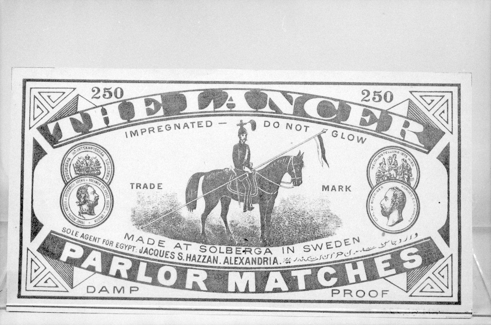 • KM 80220. Tändsticksbild, Egypten med skrift.