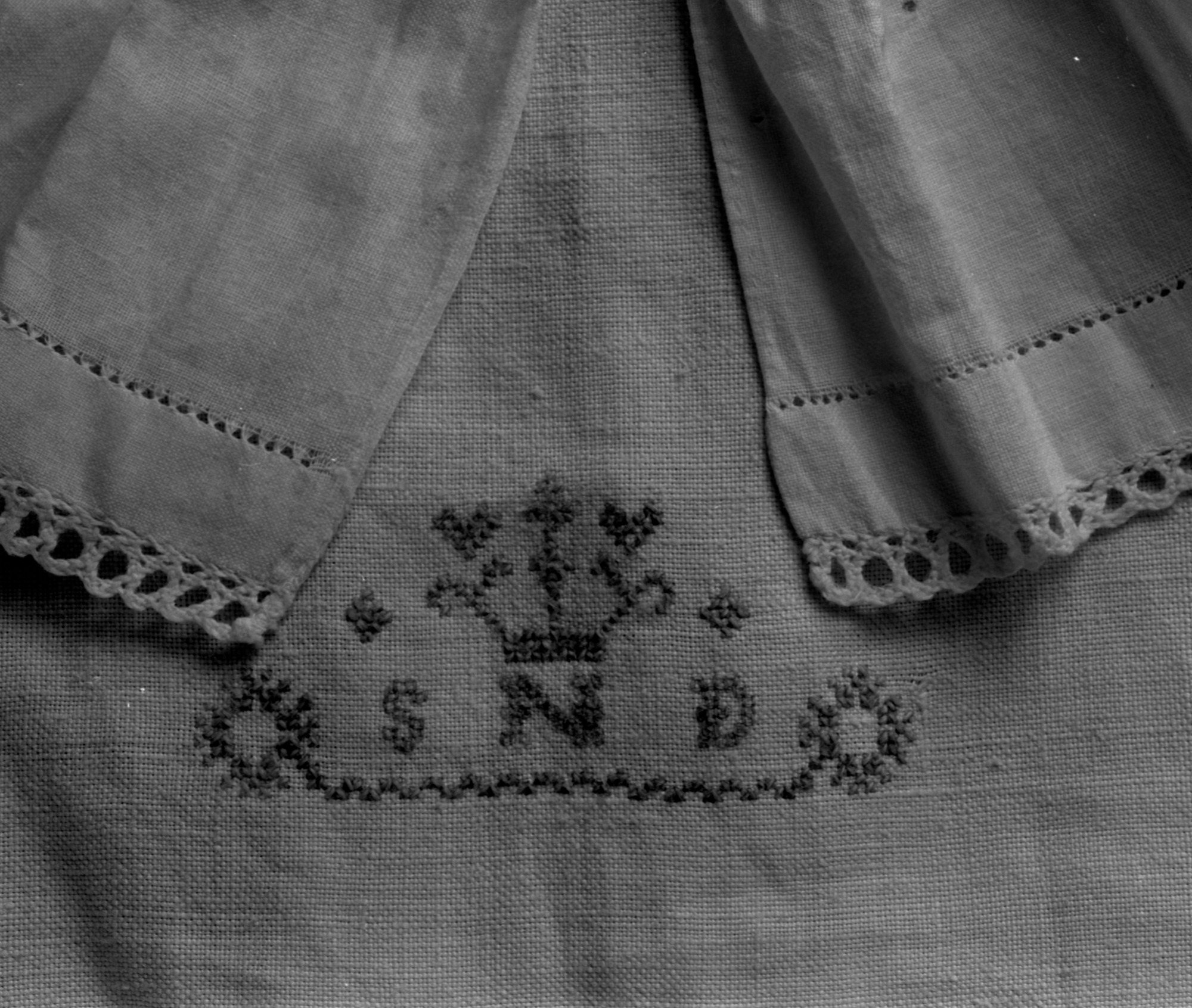 • KM 46170. Monogram på överdelsärk. Sydvästra Skåne.
