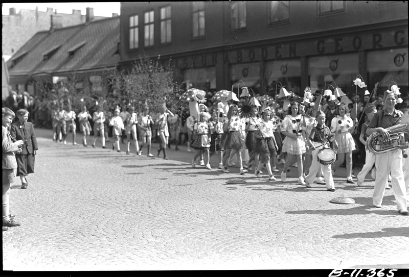 • Grothéns bildsaml. Barnens Dag 1944. Barntåg på Västra Mårtensgatan.