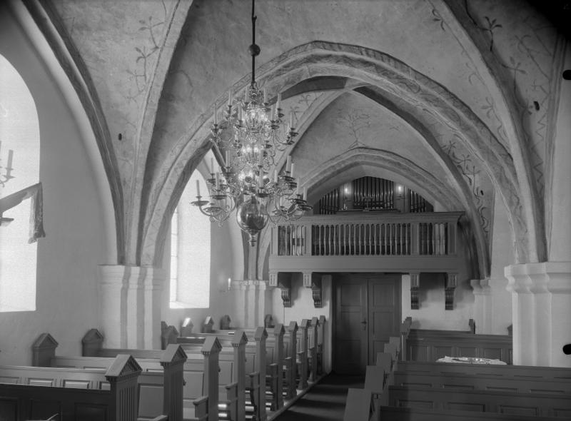 • Hofterup. Hofterups kyrka. Interiör. Vy mot orgelläktaren.