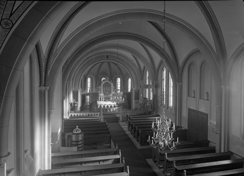 fotografi, kyrkointeriör, valv, dörr, predikstol, altare, altarring, fönster, ljusstake, altartavla, kyrkbänk, ljuskrona