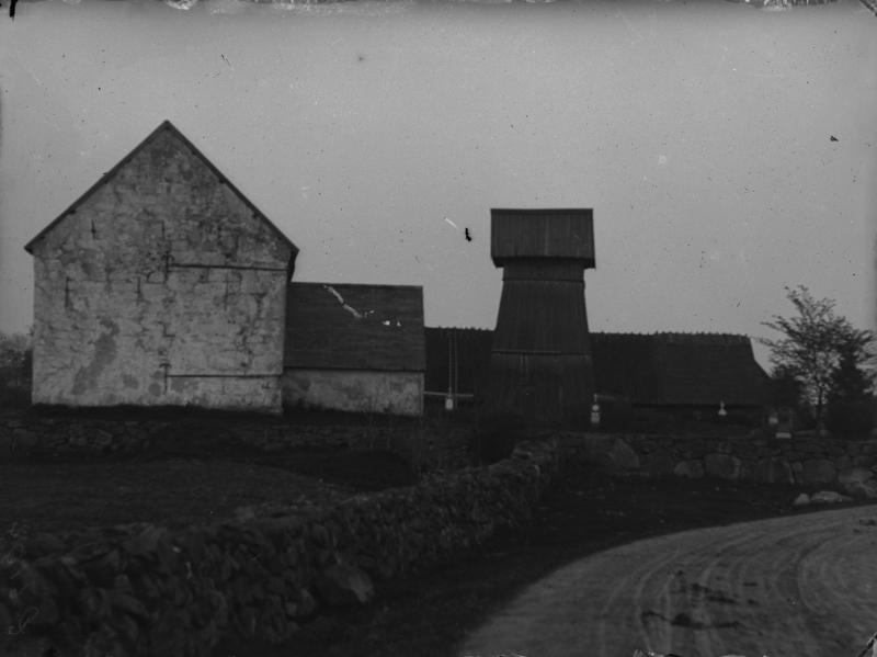fotografi, landskap, kyrka, byggnad, väg, gärdesgård, himmel, hus, träd, halmtak, klockstapel, mur, sten