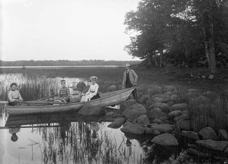 fotografi, man, himmel, gräs, byxa, kjol, hatt, slipsnål, landskap, träd, kavaj, båt, roddbåt, förkläde, skog, person, väst, sjö, kvinna, sten, blus, slips, växt, kedja