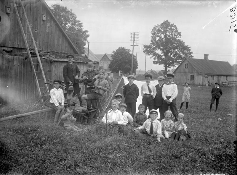 fotografi, hus, växt, barn, tröja, matlagning, uniform, fågelholk, keps, telefongalge, träd, man, mössa, skärmmössa, tält, stege, elstolpe, gräs, ungdom, väst, väg, landskap, bebyggelse, byggnad, scout, skjorta, kedja, bälte, scarf, kaffekanna, klänning, frisyr, nyckel, gruppfoto, person, knäbyxa, bod, kavaj, jordbruksredskap, slips, kostym