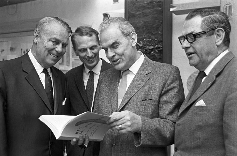 • Lund. Doc. Ragnar Blomqvists avskedsfest 30/4 1968. Från vänster: Holger Crafoord, Anders W Mårtensson, Ragnar Blomqvist, Bengt Bengtsson.