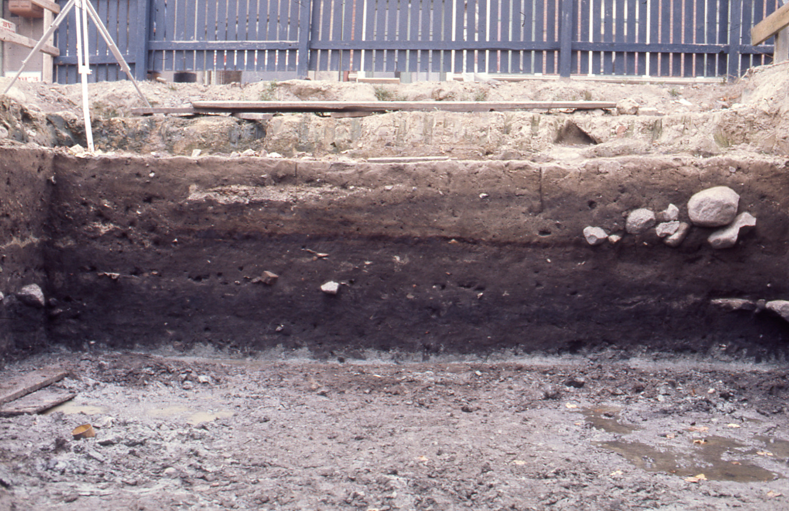 • Lundaarkeologiska avdelningens fotonegativ. Lund. Kv. Repslagaren 22. Schakt 4. Sektion. Sedd mot väster.