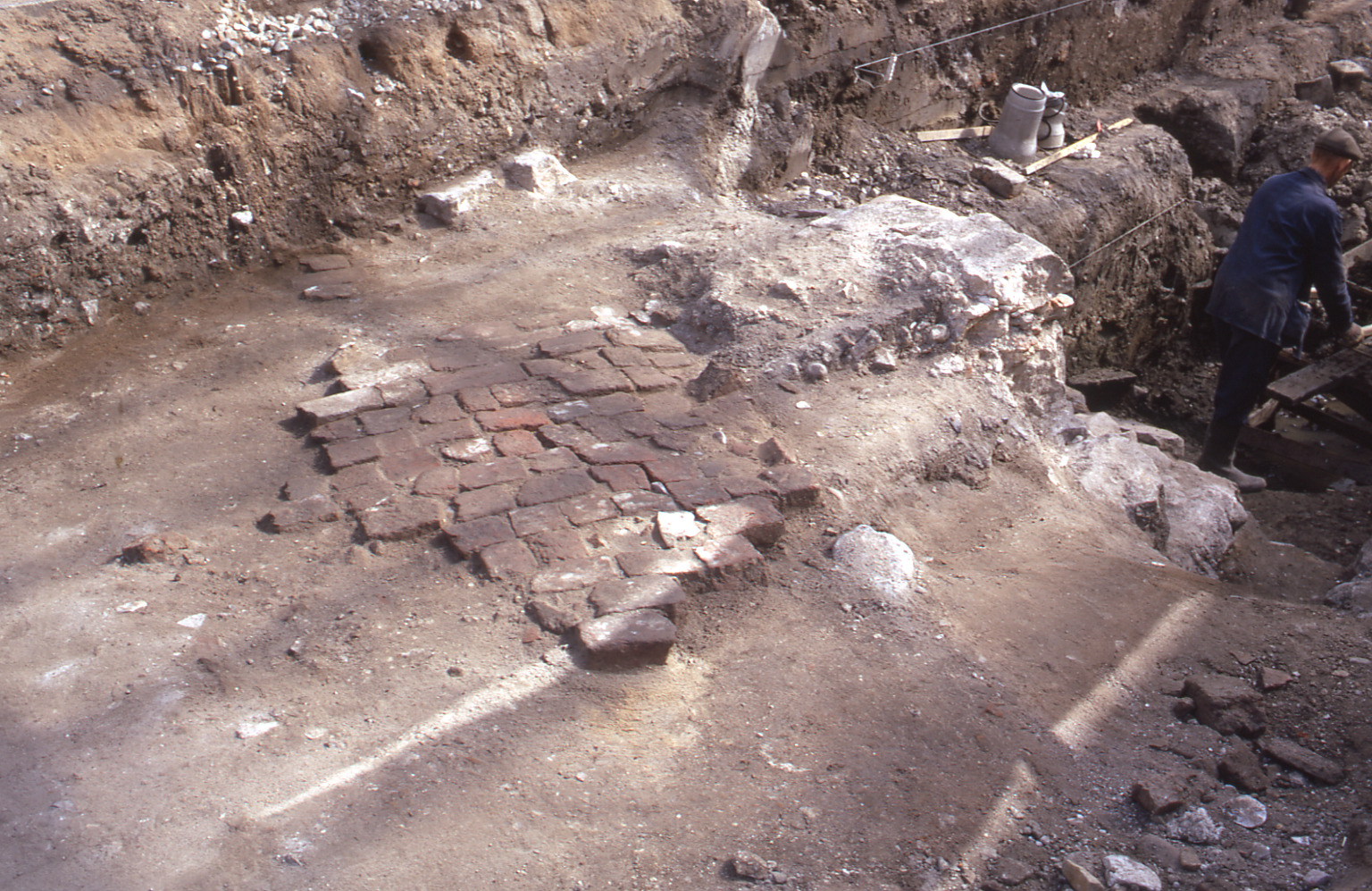 • Lundaarkeologiska avdelningens fotonegativ. Kattesund. Gravarna öster om stenkyrkan. Avloppsgrävning 1974.