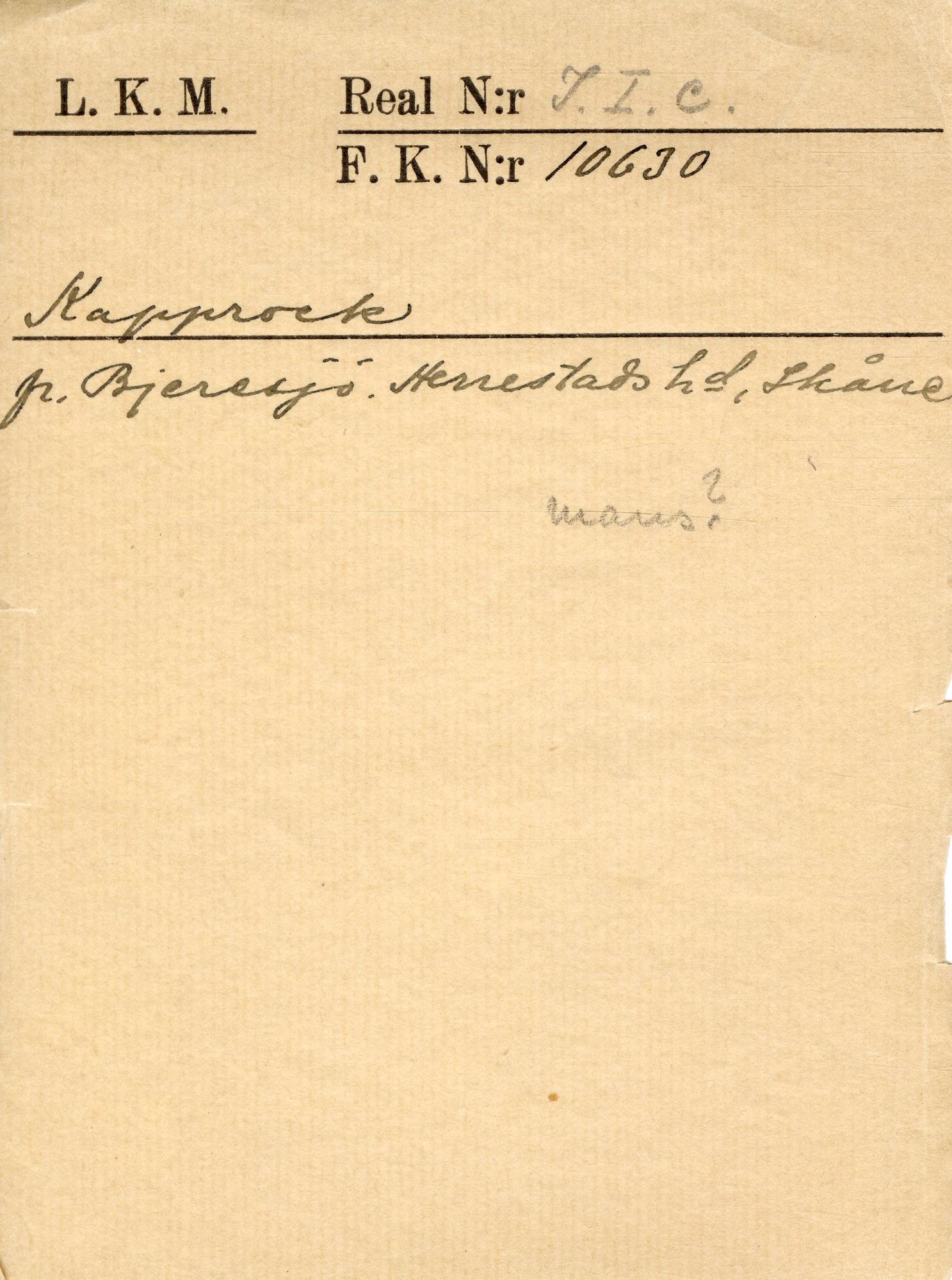 • Kapprock fr. Bjeresjö, Herrestads hd, Skåne. Mans? [övrig information saknas på katalogkortet]