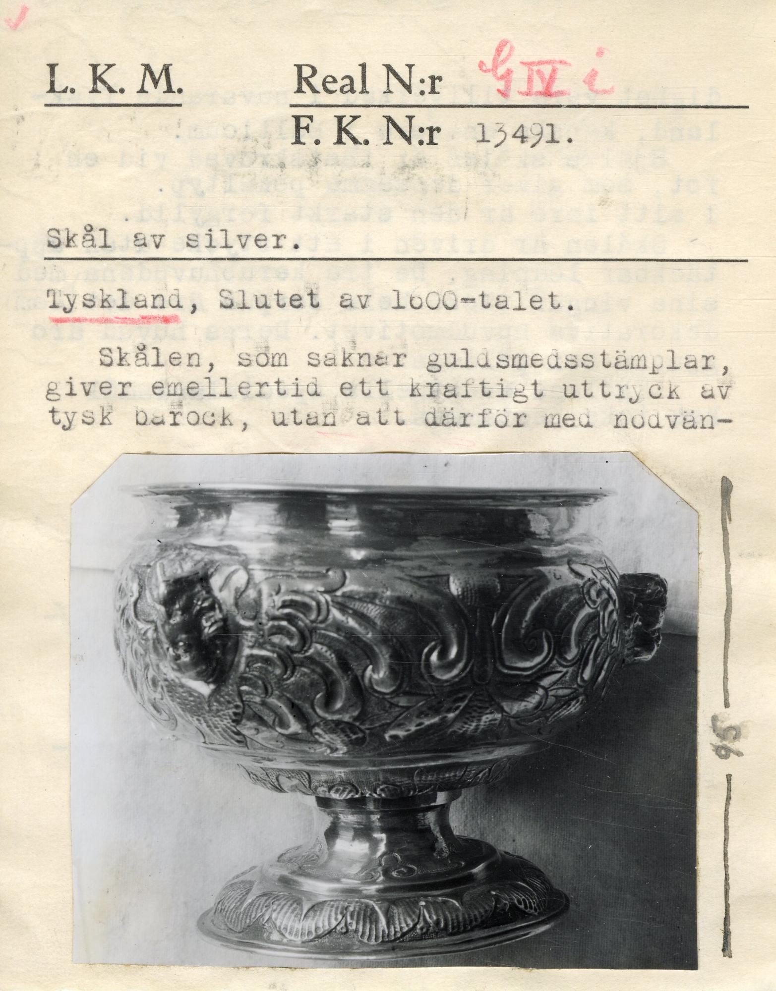 • Förvärvat genom Intendenten G. Karlin. Enligt Karlins lappkatalog tysk eller baltisk.