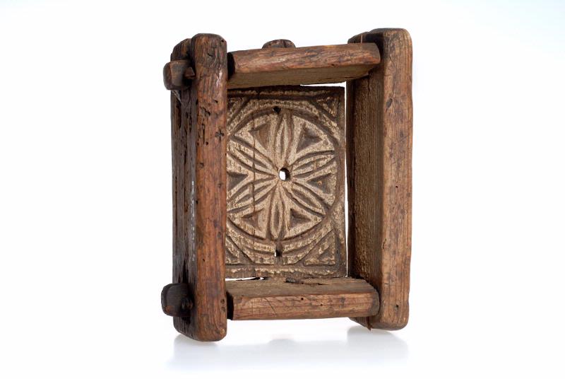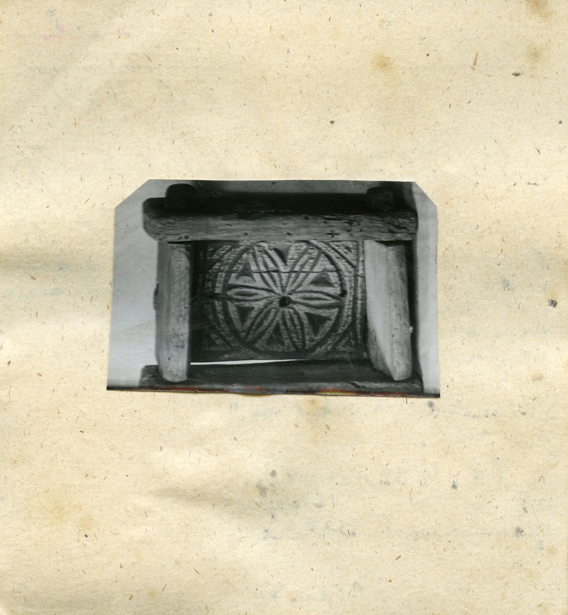 Rektangulär. I bottnen sexuddig rosett inskriven i cirkel. Gavlarna enkeltappade i långsidorna, tappningarna lodrätt enkelreglade med träsprintar. Bottnen enkeltappad i gavlarna, tappningarna ej reglade. Tre avrinningshål i bottenskivan.