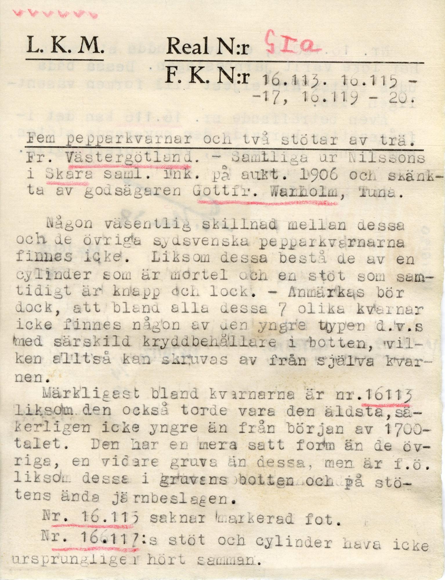 • Uppköpt 1906 av G Karlin (på auktion) ur adjunkt Anders Nilsson i Skaras samlingar [prisuppgift saknas]. Pengar till förvärvet skänktes av godsägare Gottfrid Warholm, Tuna.