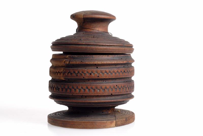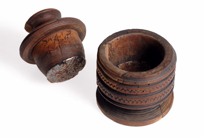 • Med lock stöt, svarfvad, foten lagad.