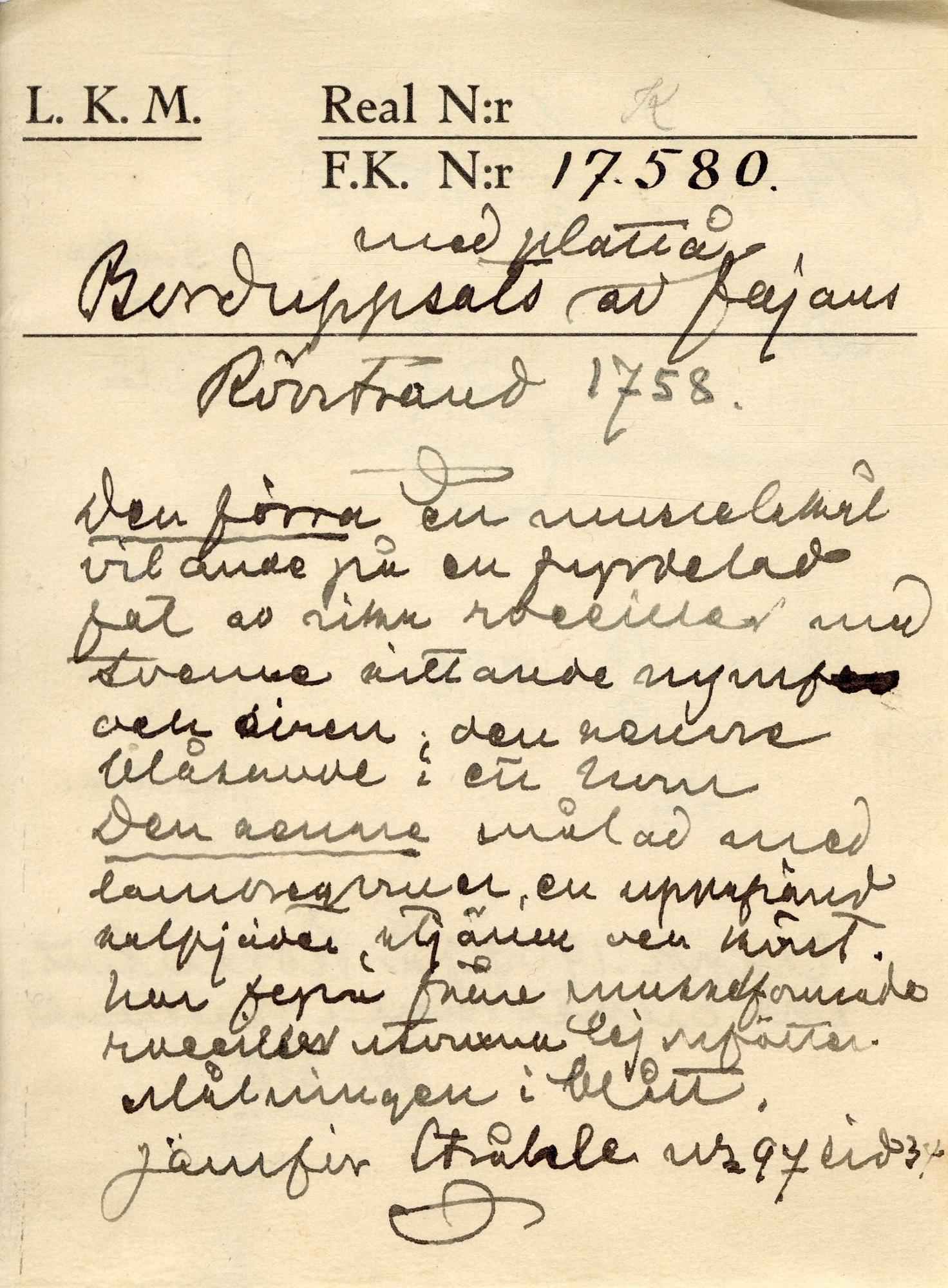 Förvärvad 1907-04-25 av Rosentvistska auktionen.