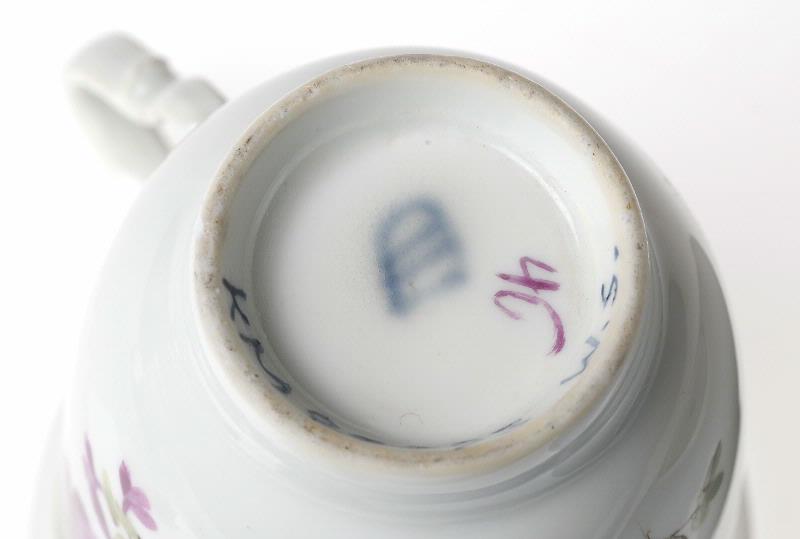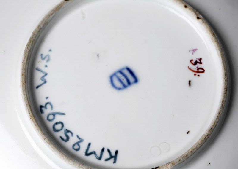 • signerad: bandskölden i blått under både kopp och fat [bild 2, 3]