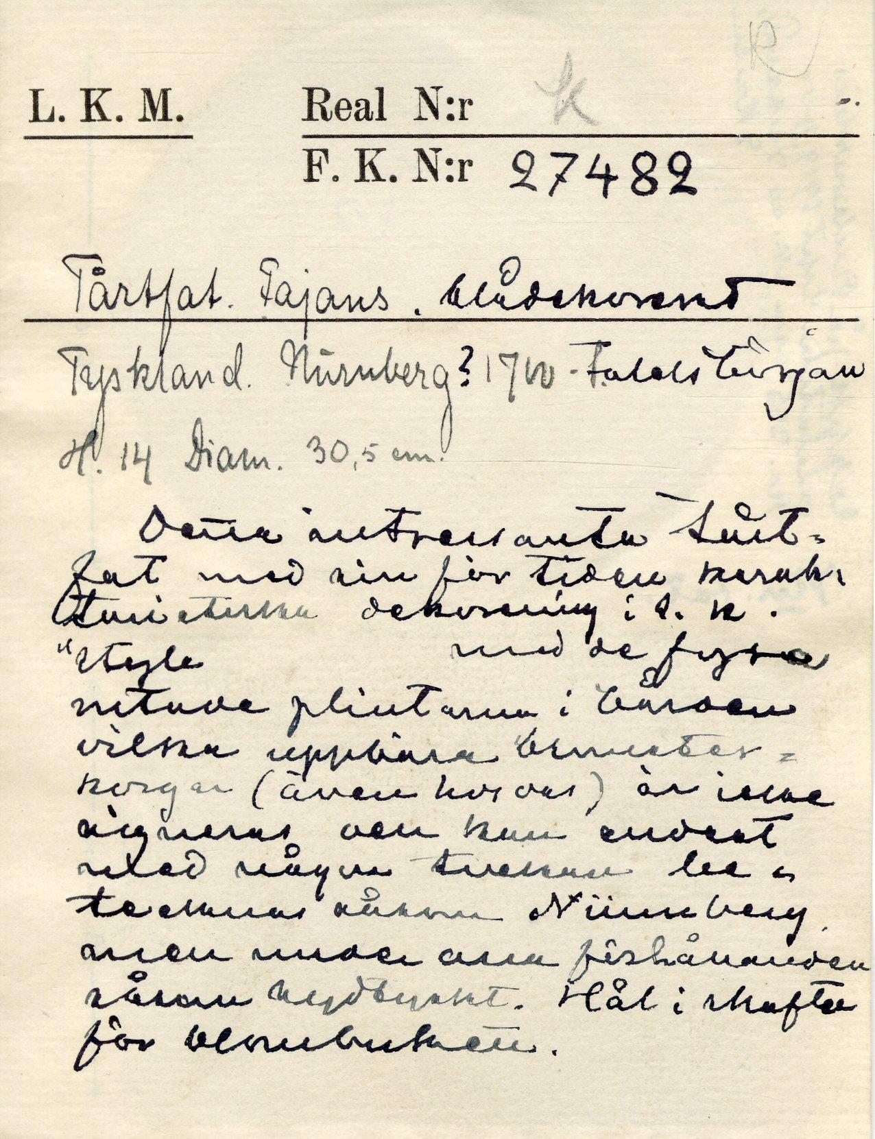 • Uppköpt hos Bukowski den 25/9 1919 för 255.00 kr. och skänkt av Intend. G. J. son Karlin.